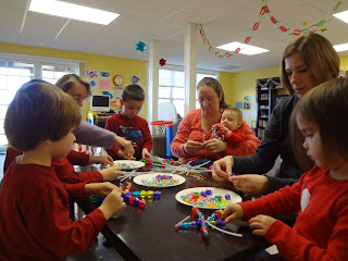 Start beading!  It helps to finish each stem at least an inch from the end of the pipe cleaner.  When a child finished a stem, I would fold up the pipe cleaner to keep the beads from sliding off the end.